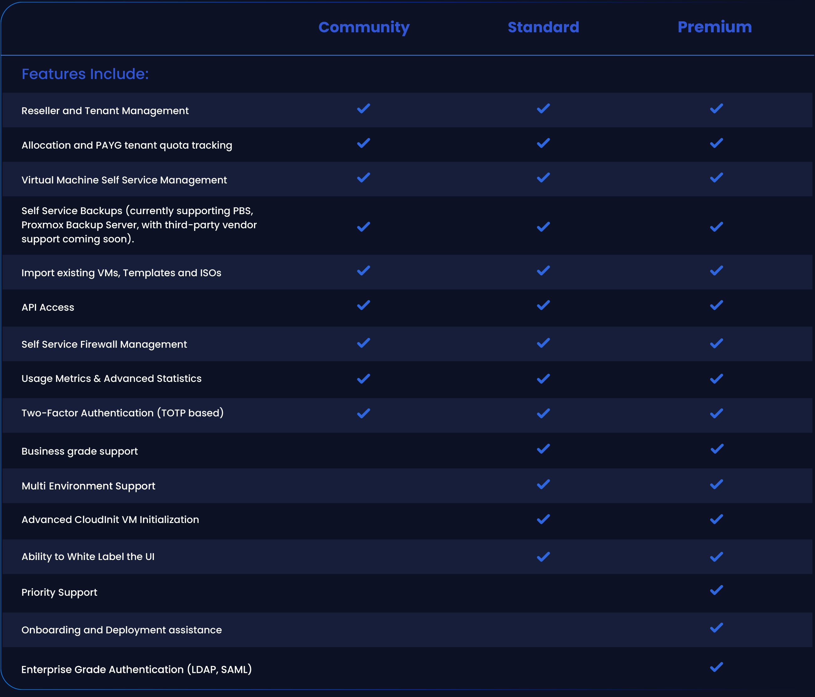 - Self Service Backups (currently supporting PBS, Proxmox Backup Server, with third-party vendor support coming soon).